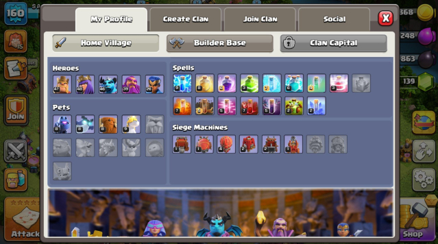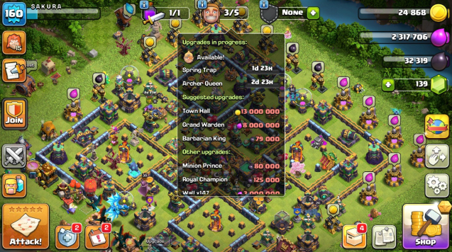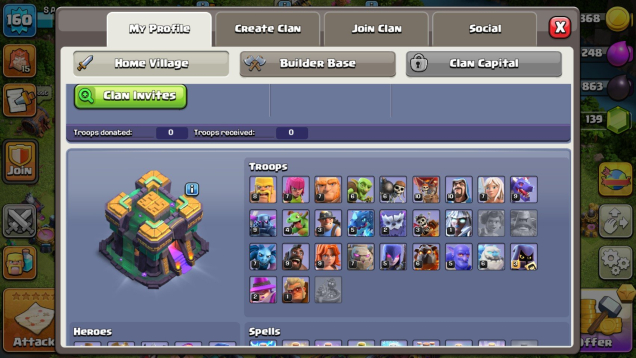Уровень Ратуши: 14Краткое описание: TH14 MAX otw | 2 облика героев + 1 пейзаж | 5 эпических предметов | 160 уровень