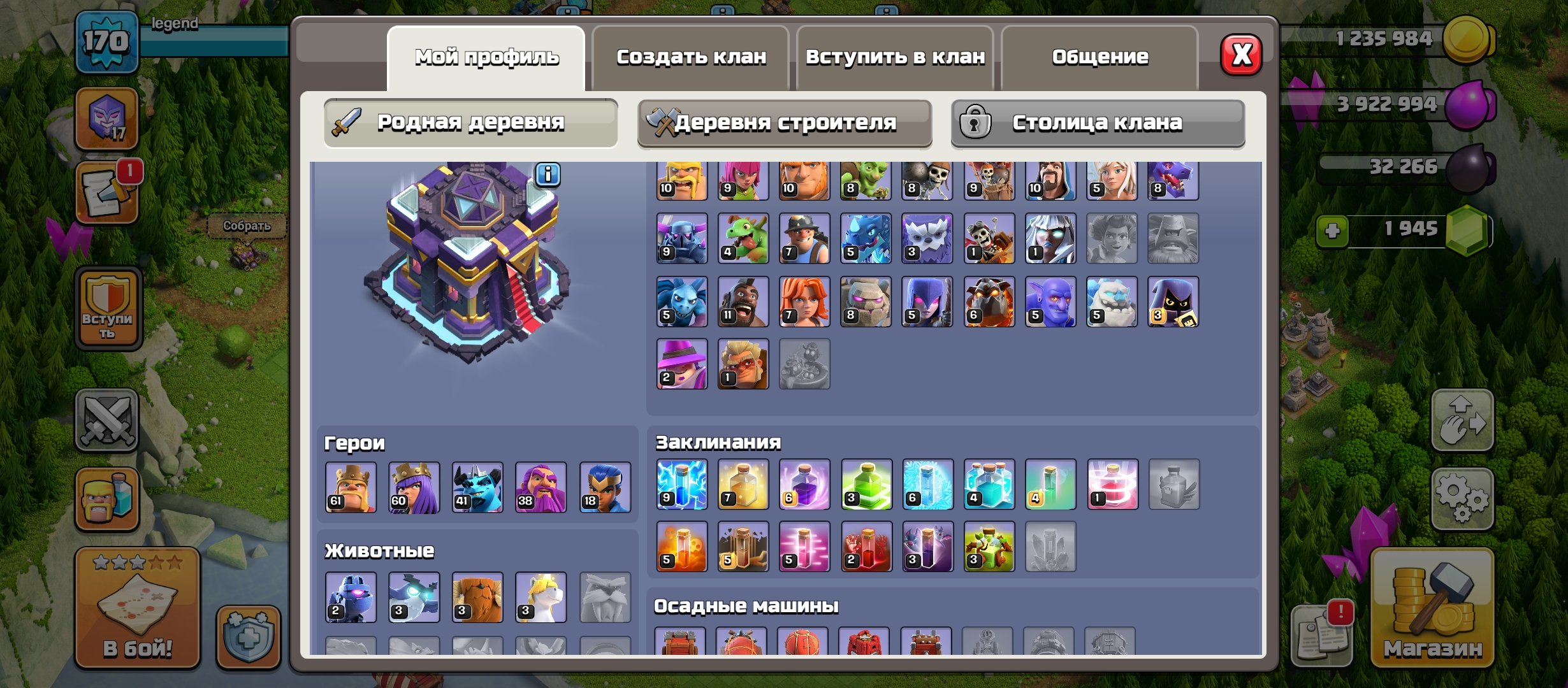 Уровень Ратуши: 15Краткое описание: 【𝟭𝟱 ТХ】 ❰🌟ФУЛЛ 𝟲𝟱%🌟❱ 🛑【💎𝟮𝟬𝟬𝟬 ГЕМОВ💎】🛑【61/60/41/38/18】🛑【👤𝟯 ДОН СКИНА👤】 ❰❤️❱