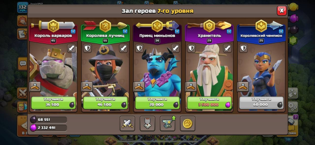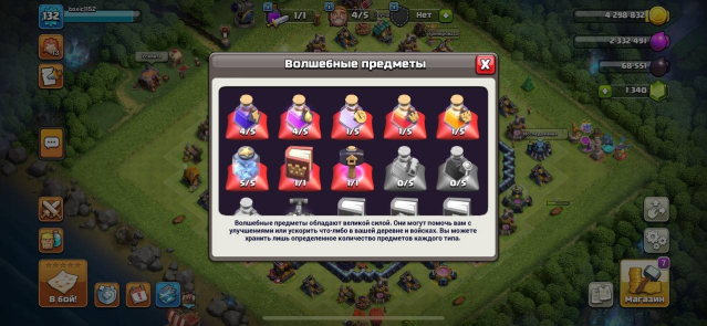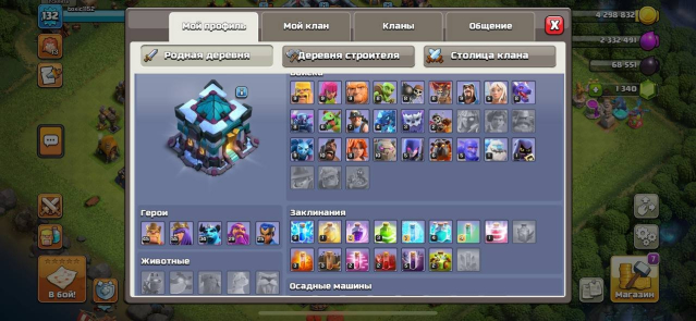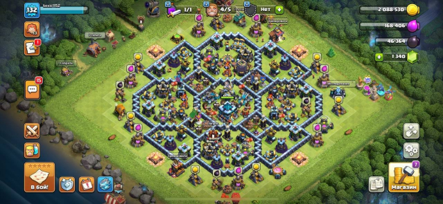 Уровень Ратуши: 13Краткое описание: 13 фул тх (кроме ловушек) 5 строителей и 1350 гемов, 132 уровень, #QURGC88LV