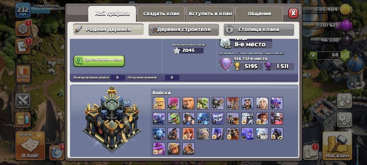 Уровень Ратуши: 17Краткое описание: ⚡️17𝐓𝐇【232𝐋𝐕𝐋】⚡️💎7 ЭПИК СНАРЯГ + ЛЕГ ОФОРМА💎🔵【ГЕРОИ 96/99/71/45】🔵 💙ТОП ЛВЛ ПОМОЩНИКОВ💙🍀ПП🍀