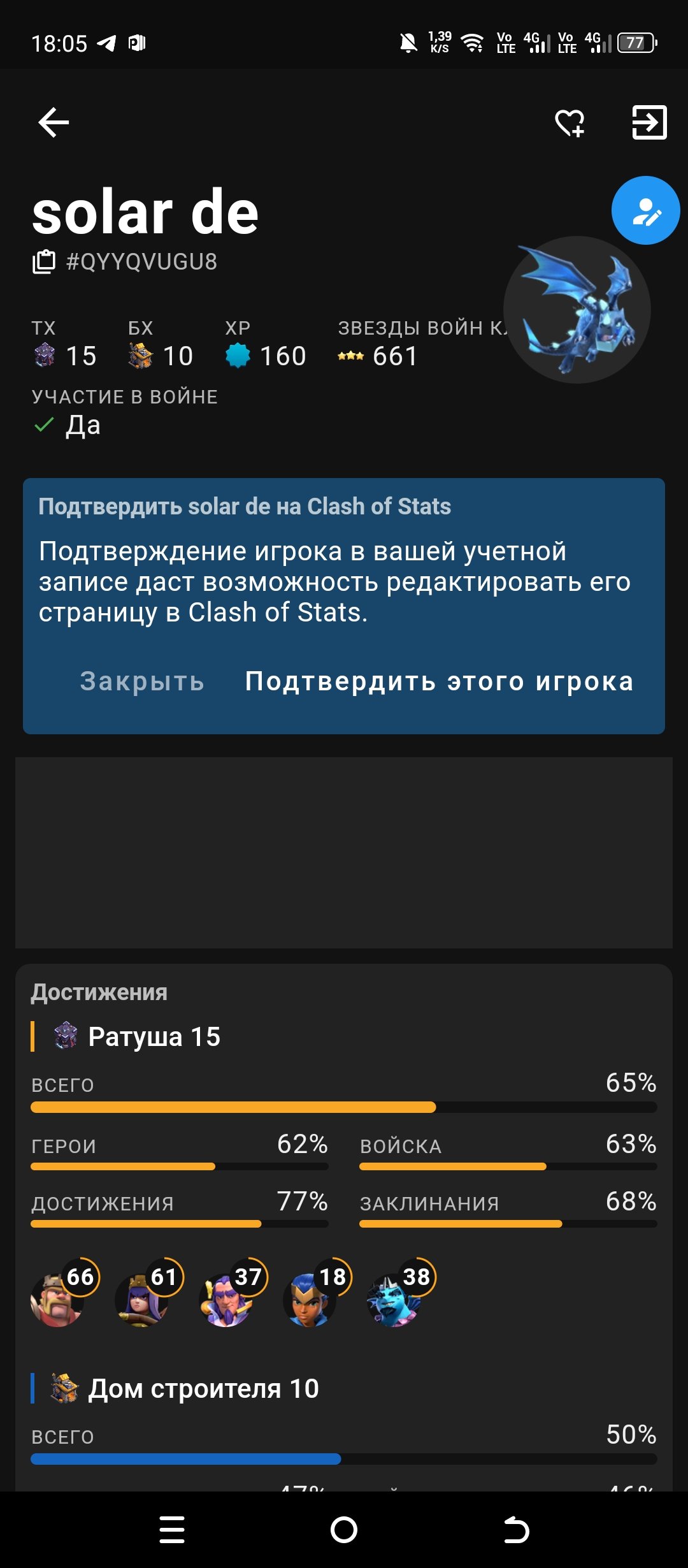 Уровень Ратуши: 15Краткое описание: 【𝟭𝟱 ТХ】🟢【🌟ФУЛЛ 𝟳𝟬%🌟】🟢【66/61/38/37/18】 🟢 【👤𝟴 ДОН СКИНОВ👤】🟢 【𝟵 ЭПИК СНАРЯГ🟣】 ❰💚❱