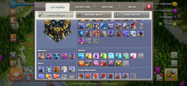 Уровень Ратуши: 17Краткое описание: TH17✅✅Level 227✅✅Heros: 71/72/53/55/26✅✅6 builders✅✅