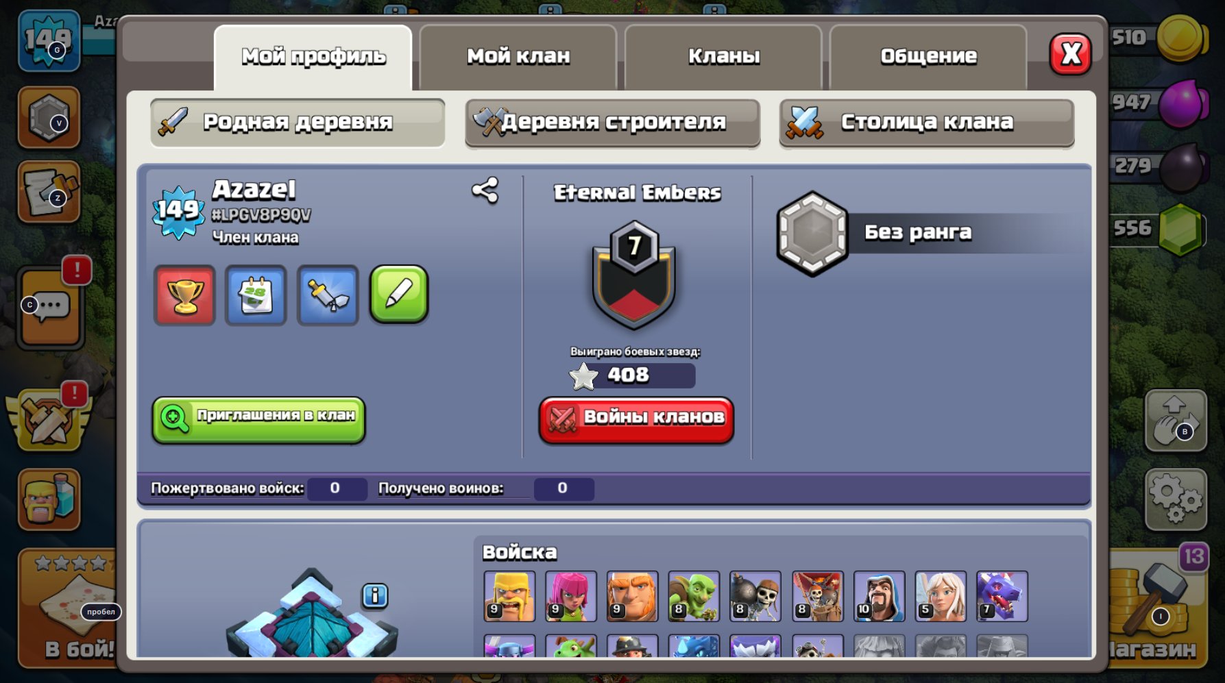 Уровень Ратуши: 13Краткое описание: 🔴ТХ 13 | 7 ДС🔵 149 LVL 🔴ГЕРОИ 44 | 62 | 30 | 35 | 21 💎 5 СТРОИТЕЛЕЙ 🔴556 ГЕМОВ 👑СКИНЫ👑 Быстрая ВЫДАЧА ✅