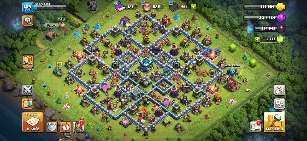 Уровень Ратуши: 13Краткое описание: 🍂🔸13 TH🔸Герои 65/68/42/45/13🔸149 LVL🔸2777 Гемов🔸🧡