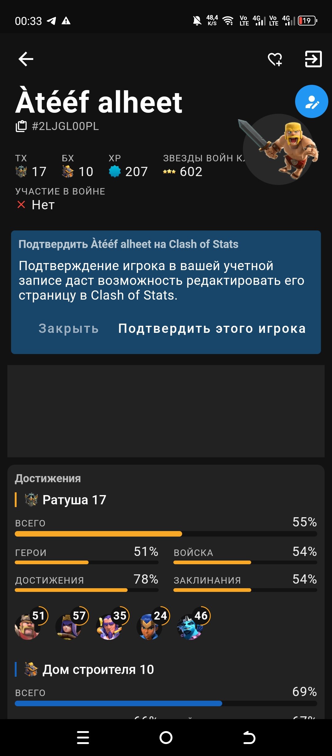 Уровень Ратуши: 17Краткое описание: 【𝟭𝟳 ТХ】 ❰🌟ФУЛЛ 𝟲𝟬%🌟❱ 🟢 【51/57/46/35/24】 🟢 【💎𝟮𝟬𝟬𝟬 ГЕМОВ💎】 🟢 【ЗАБОР 𝟭𝟱-𝟭𝟲𝗹𝘃𝗹⚔️】 ❰💚❱
