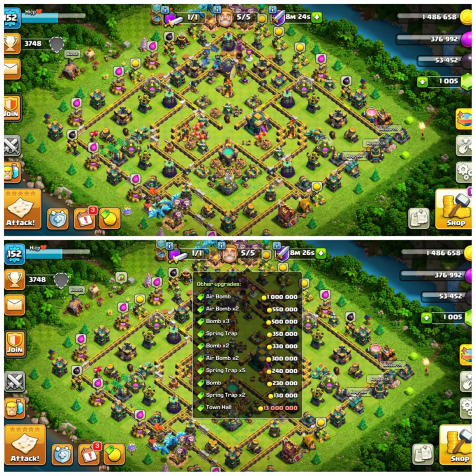 Подробное описание: TH 14 ✅Only Bomb,Traps Left🔥97℅+ MAX🌟MAXED DEFENCE🌟Heros: 46/51/40/18/30🔥Frozen Arrow/Fire Ball 17🌟Change Name Available💎160+ Cwl Madel🔥Builder Hall 10[FAST DELIVERY]
