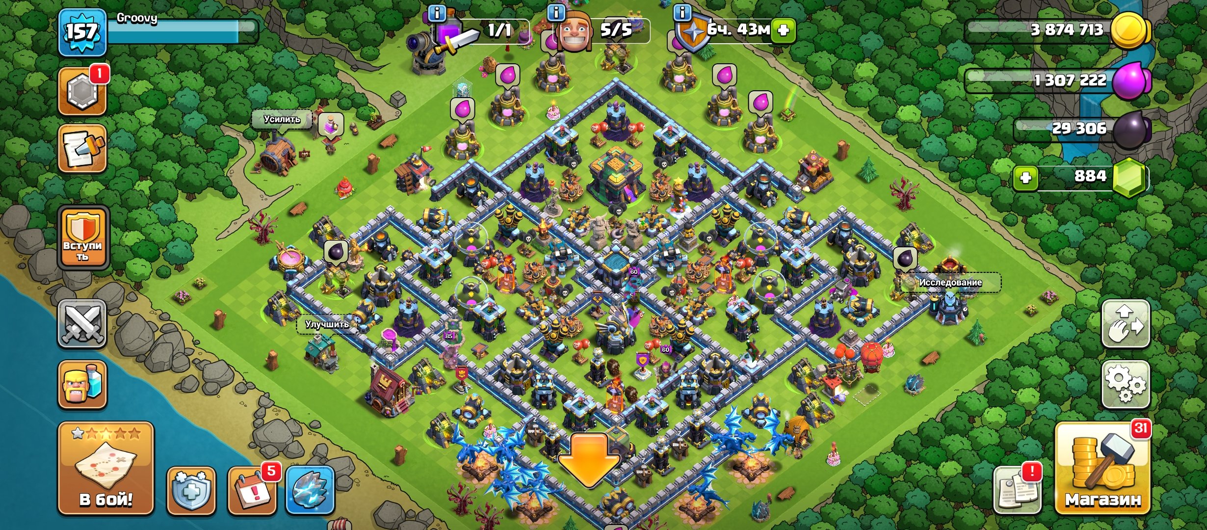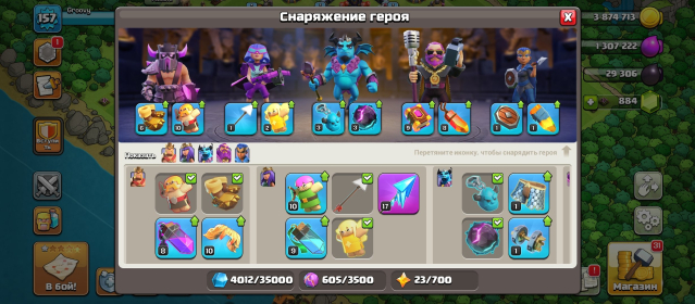 Уровень Ратуши: 14Краткое описание: 【𝟭𝟰 ТХ】🟢【🌟ФУЛЛ 𝟴𝟬%🌟】🟢【66/66/44/46/14】 🟢 【👤𝟲 ДОН СКИНОВ👤】🟢 【ОФОРМЛЕНИЕ🌠】 ❰💚❱