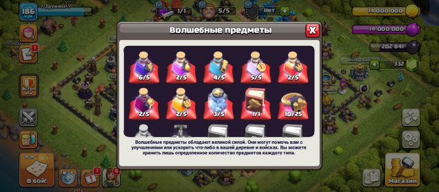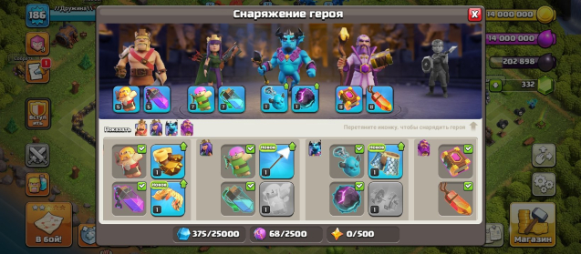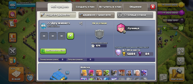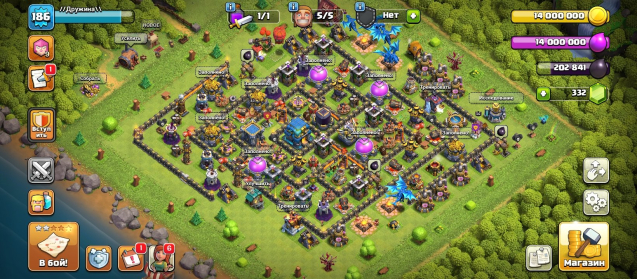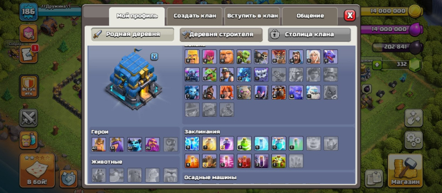 Уровень Ратуши: 12Краткое описание: 🎀12 TH🎀⭐186 LEVEL⭐👑ГЕРОИ 43/51/37/26👑💪5 СТРОИТЕЛЕЙ💪💎332 ГЕМОВ💎