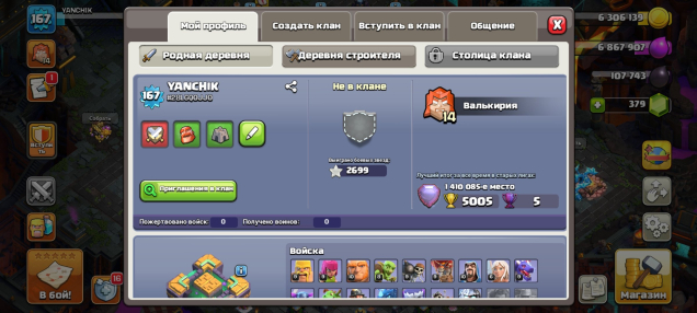 Уровень Ратуши: 14Краткое описание: 14 ТХ — 13 ФУЛЛ | ДОНАТНЫЙ АККАУНТ | 5 РАБОВ | СКРИНЫ В ОПИСАНИИ