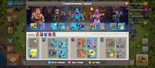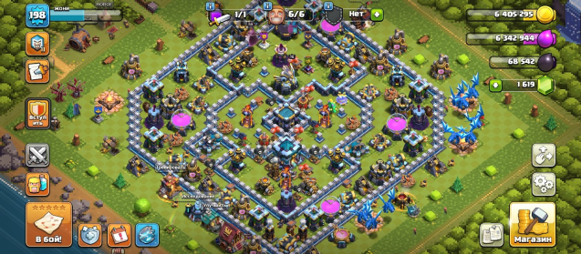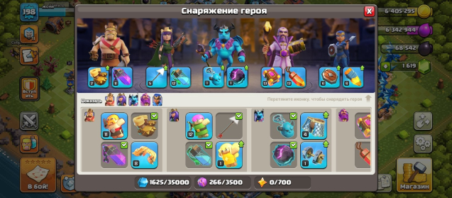 Уровень Ратуши: 13Краткое описание: 🎀13 TH🎀⭐198 LEVEL⭐👑ГЕРОИ 69/75/43/50/17👑🌸1 СКИН🌸🌠1 ОФОРМЛЕНИЕ🌠💪6 СТРОИТЕЛЕЙ💪💎1619 ГЕМОВ💎