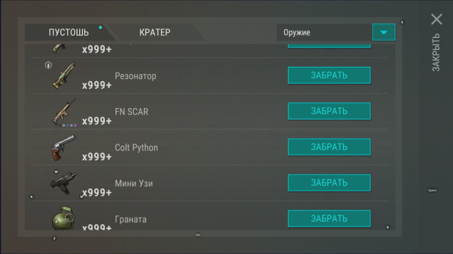🔫 Огромный выбор оружия: 20+ видов, каждая позиция по 999+