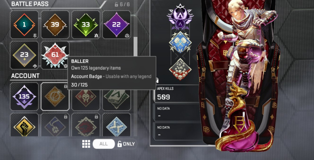 — BADGES: ✔️ 4000 damage & 20 kills — Wraith ✔️ 4000 damage — Octane ✔️ 3000 damage — Ash ✔️ 2500 damage — Fuse, Alter, Crypto ✔️ 2000 damage — Bangalore, Pathfinder, Bloodhound, Gibraltar