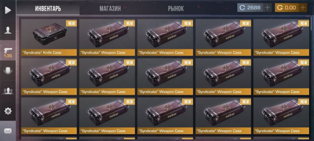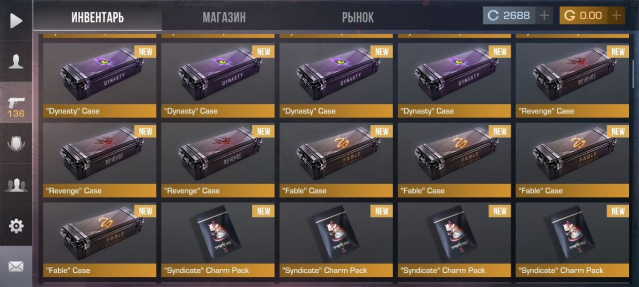 Кейсы: «Syndicate» Knife Case (1) «Syndicate» Weapon Case (14), Dynasty (4), Fable (4) Revenge (3) и другие.