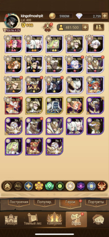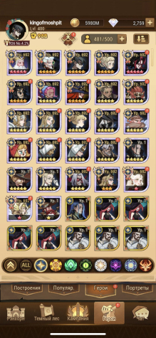 18 резонанс,69 глава(8 по серверу) все персонажи, все МЕТОВЫЕ пробуды и селипоги, охота 1%, пм/кк 15-20%. Подробности уточняйте, вышлю актуальные любые скриншоты