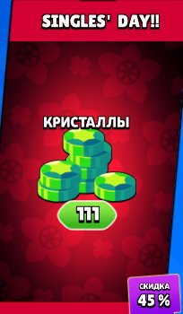 Краткое описание: 𝘽𝙧𝙖𝙬𝙡 𝙎𝙩𝙖𝙧𝙨【💎🈹】Акция «SINGLES' DAY!!» — 111 Гемов (Кристаллов) 🟪Скидка 45% 🟥ТОЛЬКО ЕСЛИ ЕСТЬ АКЦИЯ