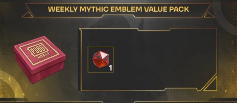 📦 Приобретая Weekly Mythic Pack 1, вы получите 1 Mythic Emblem сразу — и можете купить этот набор каждую неделю заново.