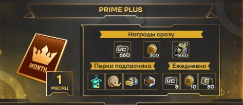 📦 Подписка «Премиум+» (на 1 месяц): сразу после активации вы получите 660 UC, 300 очков RP и предметы на 1440 UC по внутриигровой почте. Остальные награды забирайте каждый день во вкладке «Спецпредложения» → «Подписки».🟥・Внимательно проверяйте Ваш 𝐈𝐃(UID) для зачисления.🟥
