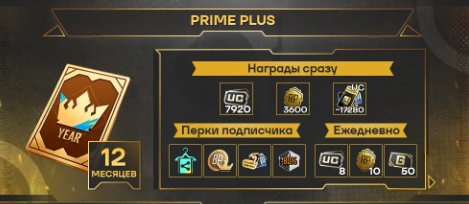📦 Подписка «Премиум+» (на 12 месяцев): сразу после активации вы получите 7920 UC, 3600 очков RP и предметы на 17280 UC по внутриигровой почте. Остальные награды забирайте каждый день во вкладке «Спецпредложения» → «Подписки».🟥・Внимательно проверяйте Ваш 𝐈𝐃(UID) для зачисления.🟥