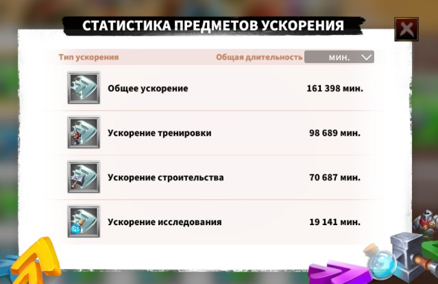 — Большой запас ресурсов, ускорений и материалов (детально видно на скриншотах).
