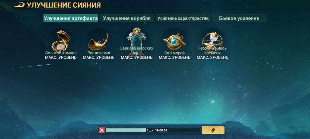 Весь флот снаряжен сэтами «Священного хранителя» и «Песчаной ярости». Есть комплекты сэтов «Железнокровного завоевателя» и «Благословение морского бога»