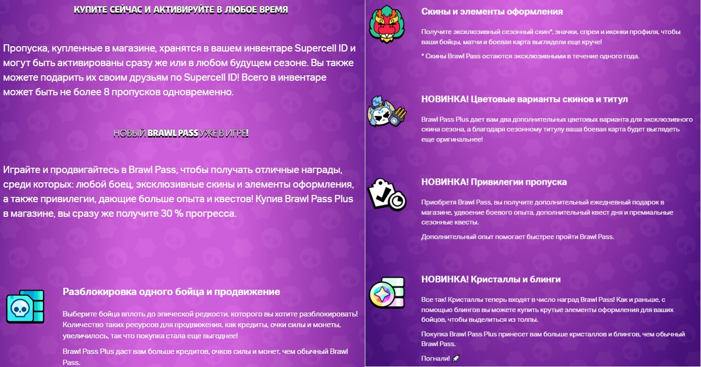 • Пропуска, купленные на сайте Supercell Store, хранятся в вашем инвентаре Supercell ID и могут быть активированы сразу же или в любом будущем сезоне. В инвентаре может храниться не более 8 пропусков.