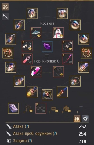 Мейн атаки 330+ (скриншот), у твинков всех примерно одинаковый шмот 254+ атаки!