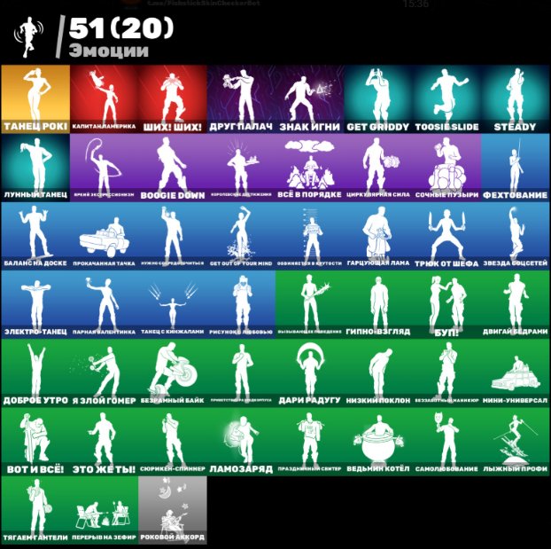 💎Редкие айтемы такие как: GET GRIDDY, TOOSIE SLIDE, ВЕЧНЫЙ, ЭРА, ТАНЕЦ POKI, ЗВЕЗДНЫЙ ЖЕЗЛ и другие скины и эмоции