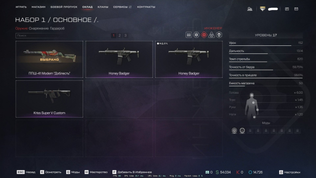 Подробное описание: чистый ник, FN SCAR-H Гексагон и Элита, Chiappa Triple Threat Механика, ППШ-41 Modern Доблесть(17ур), Honey Badger, PGM Ultima Ration Грифон(13ур), AS50 Элита, Taurus Raging Hunter Мангуст(28ур), 3100 корон, 14741 деталей