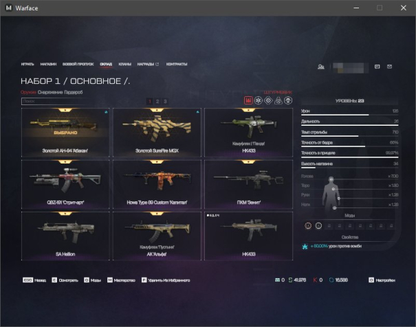 ✔️ Штурмовик: АК «Альфа», ПКМ «Зенит», SA Hellion, Золотой SureFire MGX, Золотой АН-94 «Абакан», Howa Type 89 Custom «Капитал», QBZ-191 «Стрит-арт», HK433