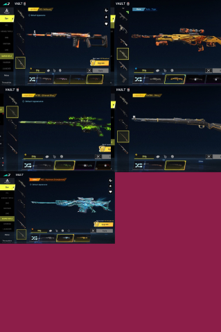 M1887 — Abyss Kala — Tiger✅ M700 — Ethereal Blue✅ SVD — Hellbound✅ Kar98k — Glory✅ M82 — Nightmare Entanglement ✅ M4A1 — Colossus Titan✅ KAG-6 — Violet Wraith✅ Spear — Iridian ✅ VSS — Pendulum of Fate✅ AK47 — Lava✅ Scar — Molten Core✅ AR97 — Bit Strike✅ Fal — Evolved Draco✅ Galil — Celestial vein✅ MCX — Twilight✅ INP-9 — Molten Core✅ Vector — Violet Wraith✅ URB — Blood Vengeance✅ UMP45 — Pendulum of Fate✅ Lightblade — Dark Force✅ Golf Club ✅ Frag Grenade — Grimace ✅