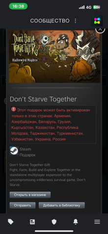 Подробное описание: Продаю ключ игры Don’t Starve Together. Способ получение через подарок.