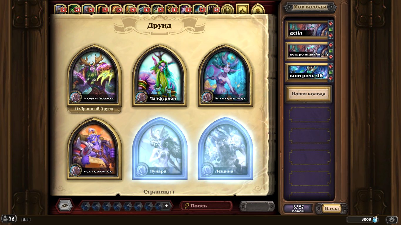 14) Нефритовый Змей Тралл (шаман), 15) Обезьяна Грома (шаман), 16) Перегруженный король (шаман), 17) Тралл Десять Бурь (шаман), 18) Тралл Катаклизма (шаман)
