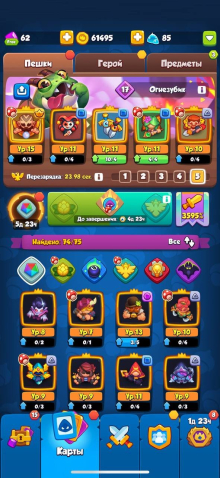 Краткое описание: ЖИР АККАУНТ, ОЧЕНЬ СТАРЫЙ, 3600 КРИТА ✅✅✅Подробное описание: 3600 крита, фулл легендарный сет, копье макс лвл, амулет 18 лвл, куртка 15лвл, 15 монах, 11 меч, 11 дриада, 11 арлекин, 13 задира под дд, 11 статуя, 12 призыватель и еще куча куча карт под любые колоды и задачи, ВСЕГО КАРТ 74/75. куплено множество пассов, так что очень много старых эмоций, после оплаты перепривяжем аккаунт на ваш аккаунт my games, помогу абсолютно со всем, аккаунт полностью мой, играю очень давно, других пассажиров никогда на нем не было.