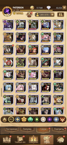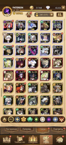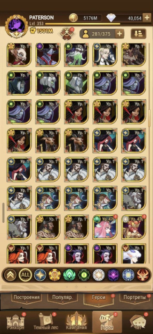 Подробное описание: Почти все герои с красной мебелью 353 лвл, мошность 1.6B 40к Алмазов.
