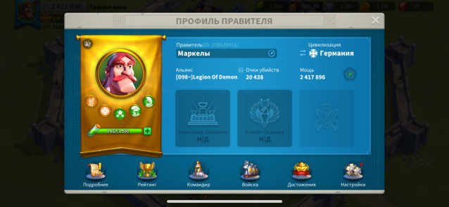 Подробное описание: Состою в хорошем альянсе где все друг другу помогают альянс 85 миллионов мощи много ресурсов