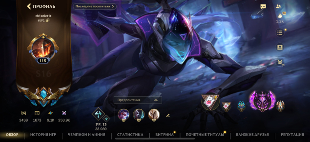 Краткое описание: Аккаунт мастер, топ 3 вейн за все время. Пик чалик 94 метки