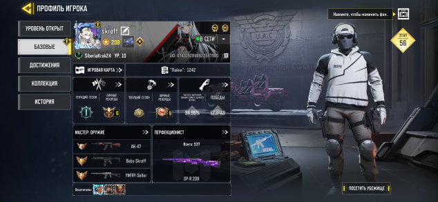 Подробное описание: Привязка Activision, Android/IOS, имеются эксклюзивные скины такие как оригинальный гоуст, городской сталкер, участники и т.д. UID:6743192848822697985