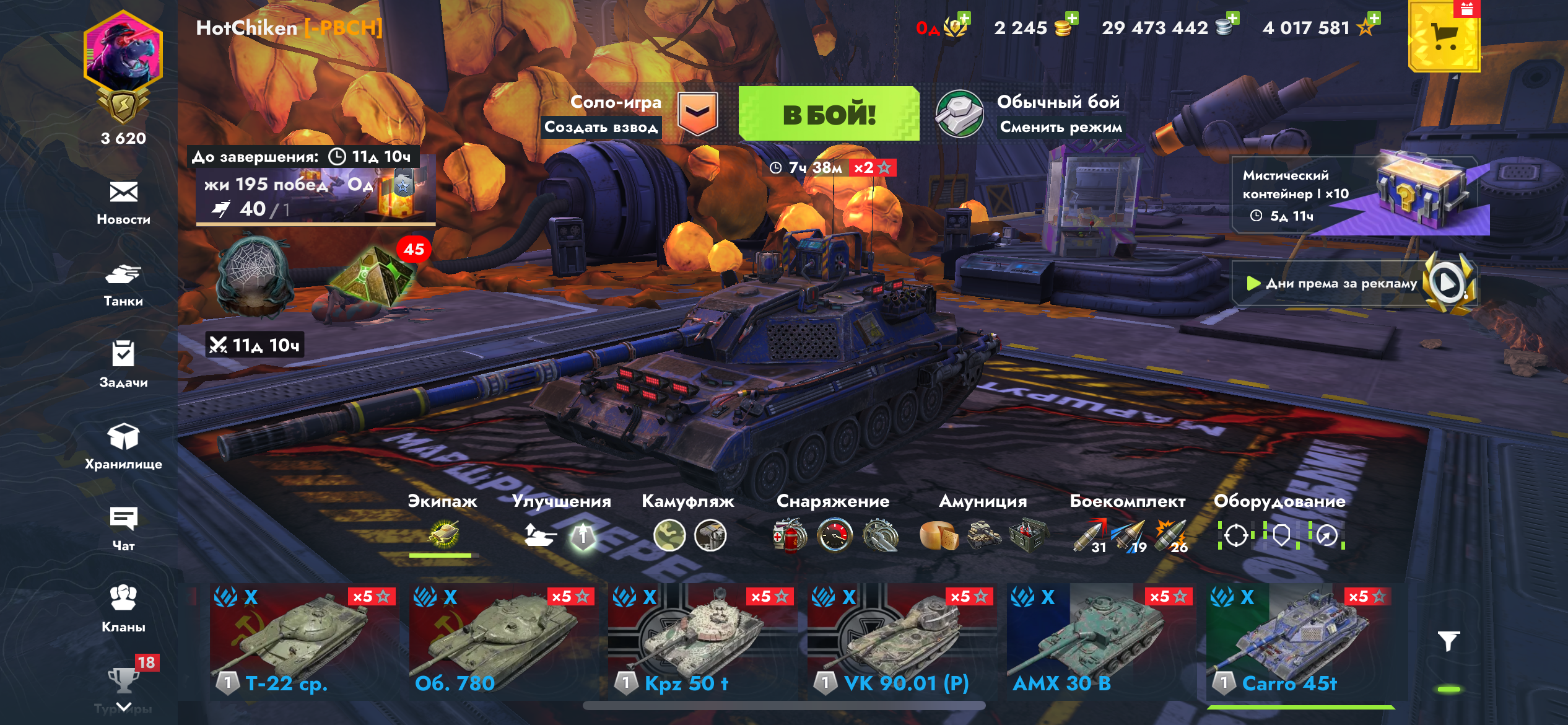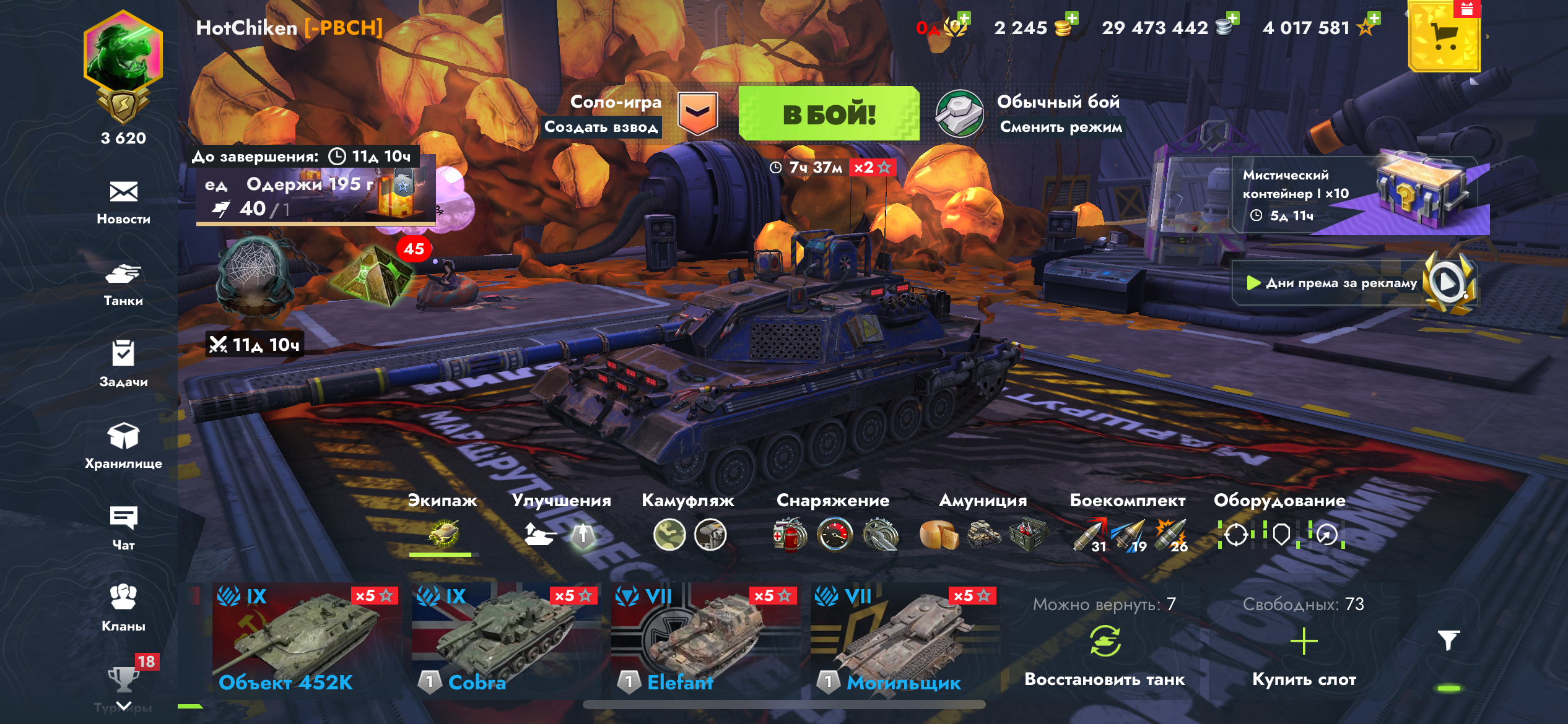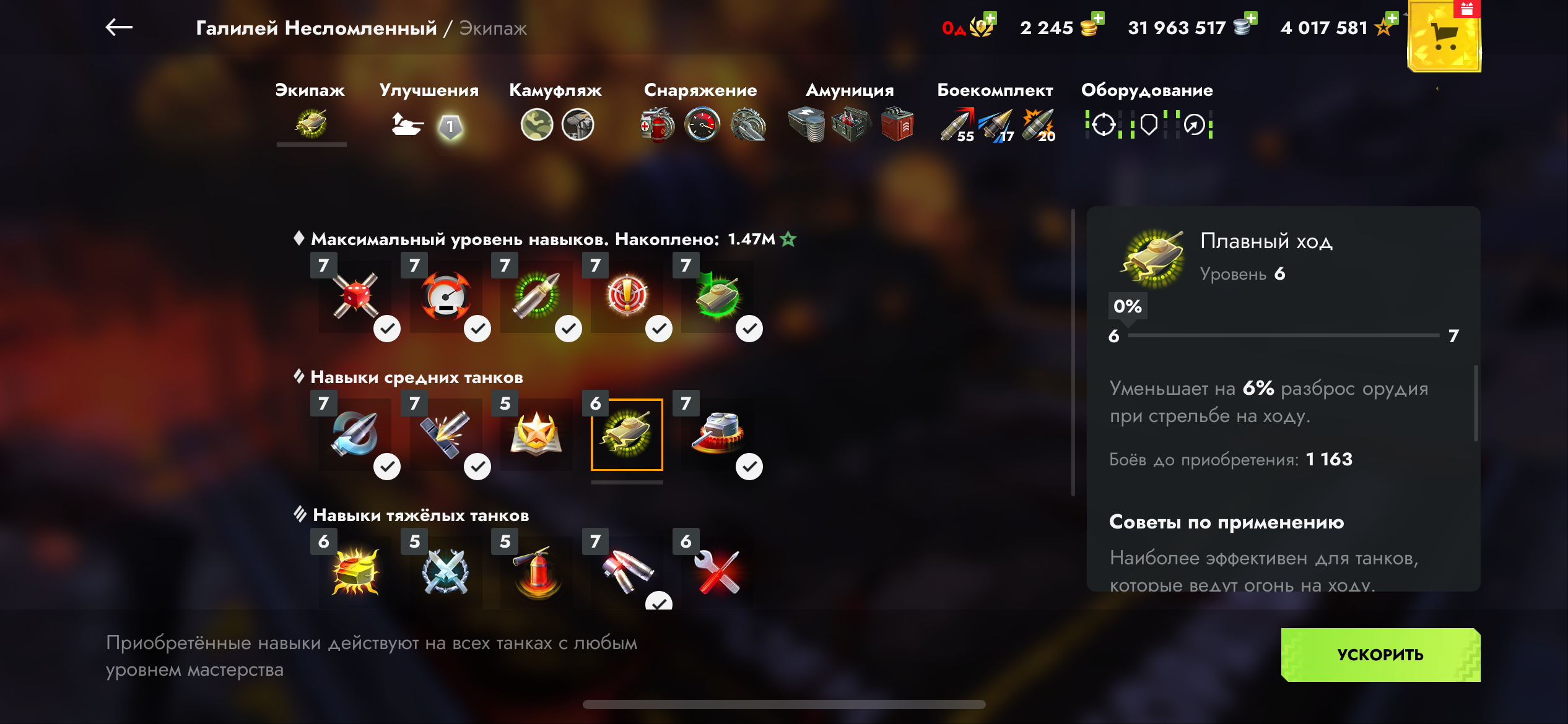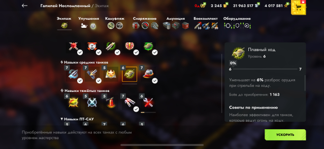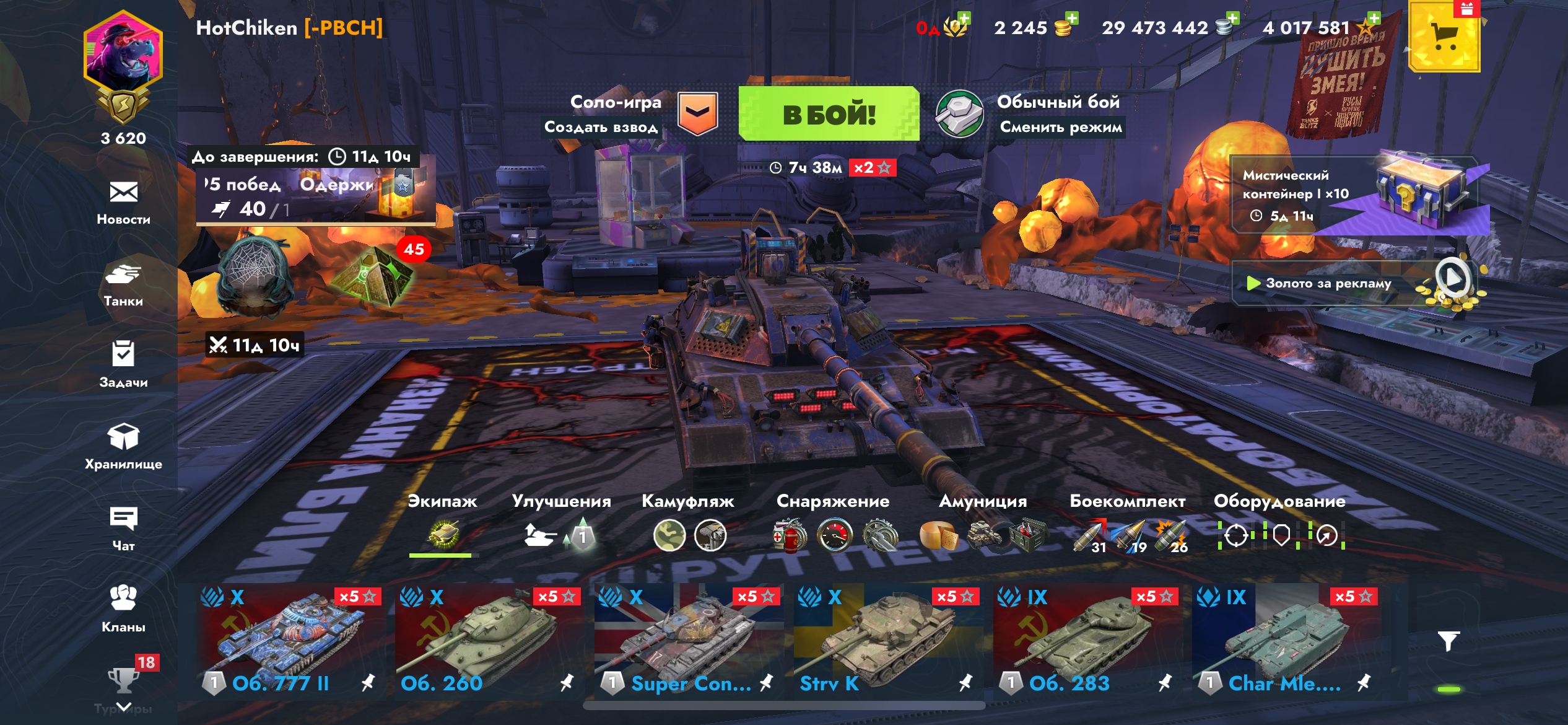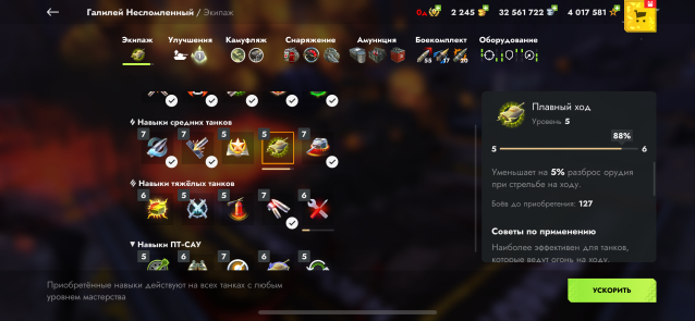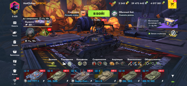 На большинстве танков полностью прокачено оборудование (там где не стоит, можно докупить, серебра для этого достаточно). А так же стоят кастомизированые скины.