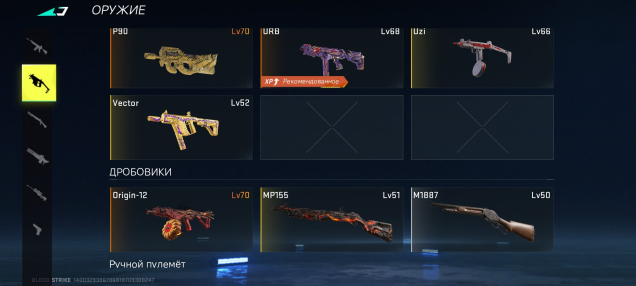 Присутствуют прокачиваемые скины улучшенные на 2 уровень практически на всех оружиях(кроме не давно добавленных)