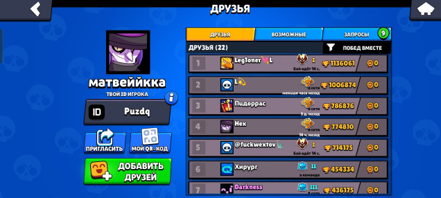 9 заявок в друзья