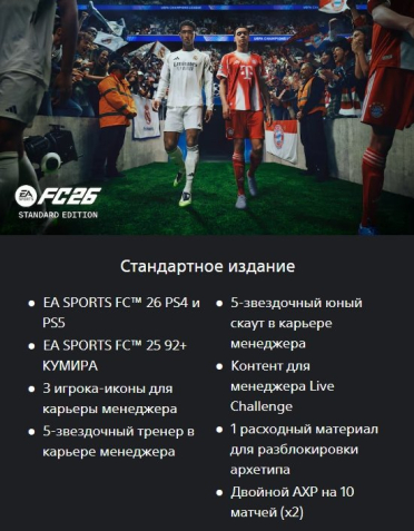 Тип предложения: Покупка с заходом на аккаунтКраткое описание: ❤️🤍EA SPORTS FC™ 26 — Standard Edition🎮PS4/5🎮На ваш или наш аккаунт🌍Регион — Турция🌍