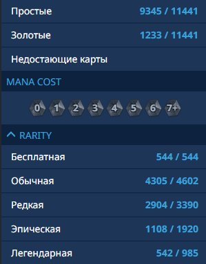 Кол-во легендарных карт: 542