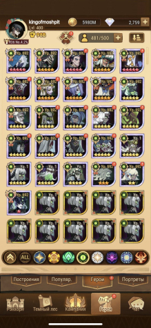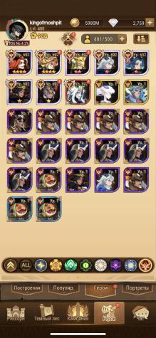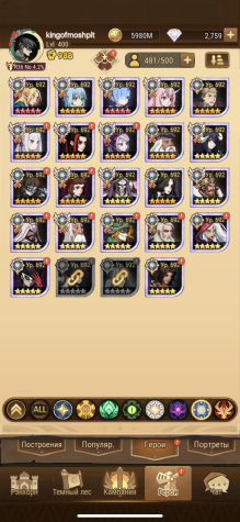 18 резонанс,69 глава(8 по серверу) все персонажи, все МЕТОВЫЕ пробуды и селипоги, охота 1%, пм/кк 15-20%. Подробности уточняйте, вышлю актуальные любые скриншоты