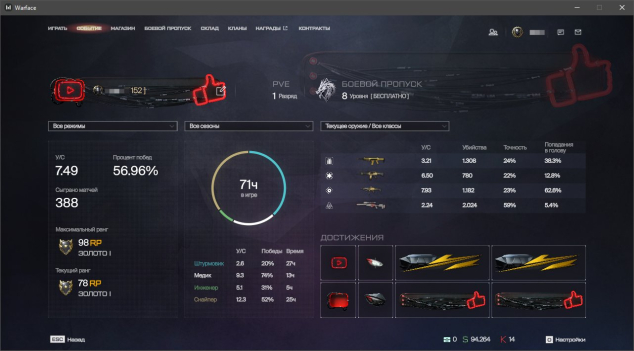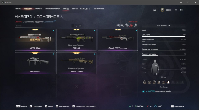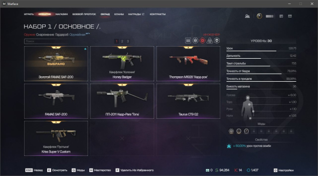 ✔️ Штурмовик: АК «Альфа», ПКМ «Зенит», SA Hellion, IWI Carmel «Неустрашимые», QBZ-191 «Стрит-арт», АК-12 'Тень', STK CMCR, Корд-5.45 «Крысолов», Золотая Beretta ARX160, FN SCAR-H «Элита», АС «Вал» Custom «Пучина»