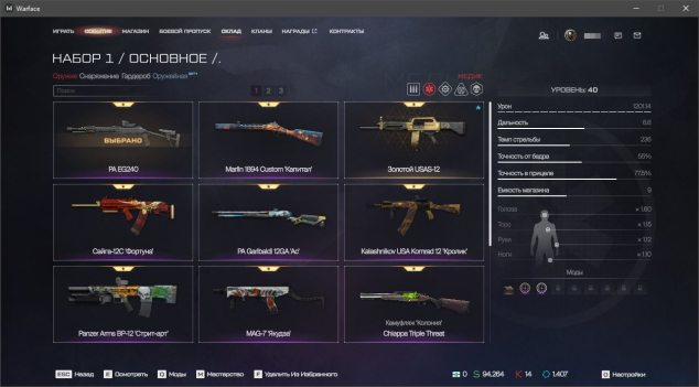✔️ Медик: Kalashnikov USA Komrad 12, Typhoon F12, Chiappa Triple Threat, MAG-7 «Якудза», Kalashnikov USA Komrad 12 «Кролик», Panzer Arms BP-12 «Стрит-арт», PA Garibaldi 12GA «Ас», Сайга-12С «Фортуна», Золотой USAS-12, V3 TAC-13 «Бездна», Marlin 1894 Custom «Капитал», PA EG240