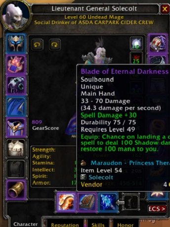 Продаю мага, все аттюны, 830 гс 11 ранк пвп, Кинжал с марадона, Blade of Eternal Darkness) 5т2, 60 уровень, Нежить, Маг