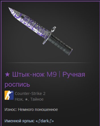 Краткое описание: 🟣🟣🟣★ Штык-нож M9 | Ручная роспись| Немного поношенное| float: 0,0705| с nametag🟣🟣🟣