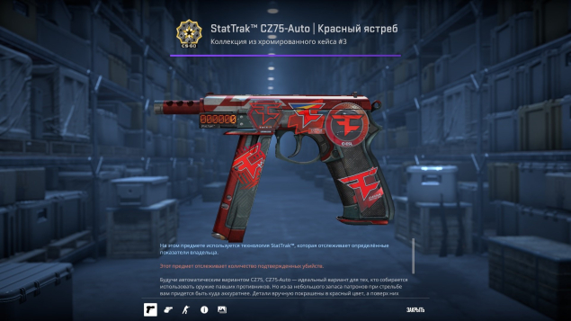 Подробное описание: 📕⚫️ StatTrak™ CZ75-Auto | Красный ястреб [ После полевых испытаний ] (c наклейками) ⚫️📕