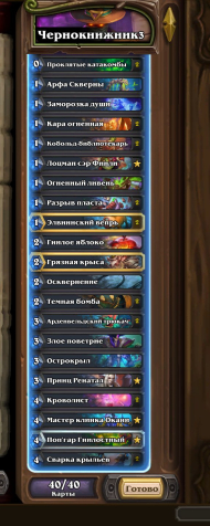 Есть еще дека под выпавшую легендарку с нового дополнения на жреца. Дека с топ 141, просто получилось бесплатно её сделать.