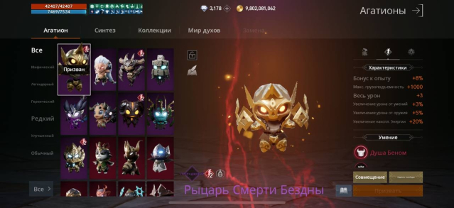 Коллекции: обычка 34, улучшенная 18, редкая 6, ивент 19.